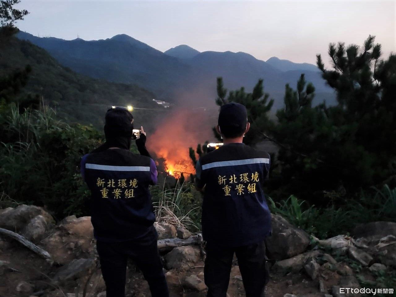 ▲蔡嫌在別人家祖墳上燒垃圾被新北市環保局破獲 。(圖/記者戴上容翻攝)