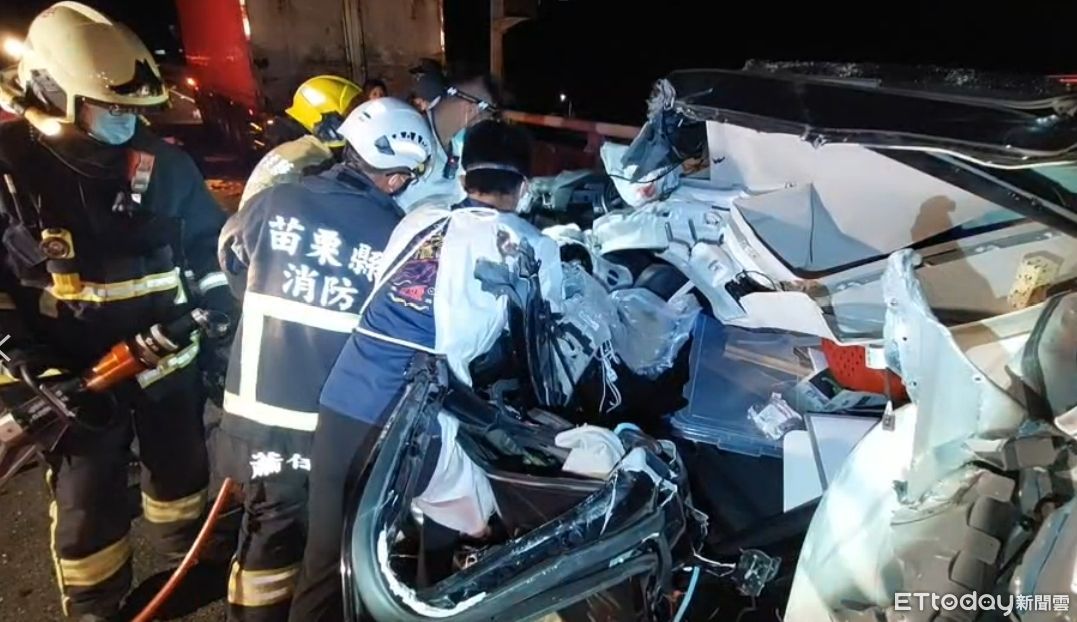 國道3號南下132公里處後龍路段24日深夜發生一起嚴重事故!現場兩輛聯結車發生追撞,不料後方又一輛BMW X5休旅車剎車不及再追撞上去,造成BMW幾乎全毀,駕駛受困。現場搶救畫面曝光,只見整輛BMW幾乎撞爛,警消人員緊急出動破壞機具,耗費了將近30分鐘才終於將重傷駕駛救出,而其妻子則焦急在旁呼喊,「撐住」。