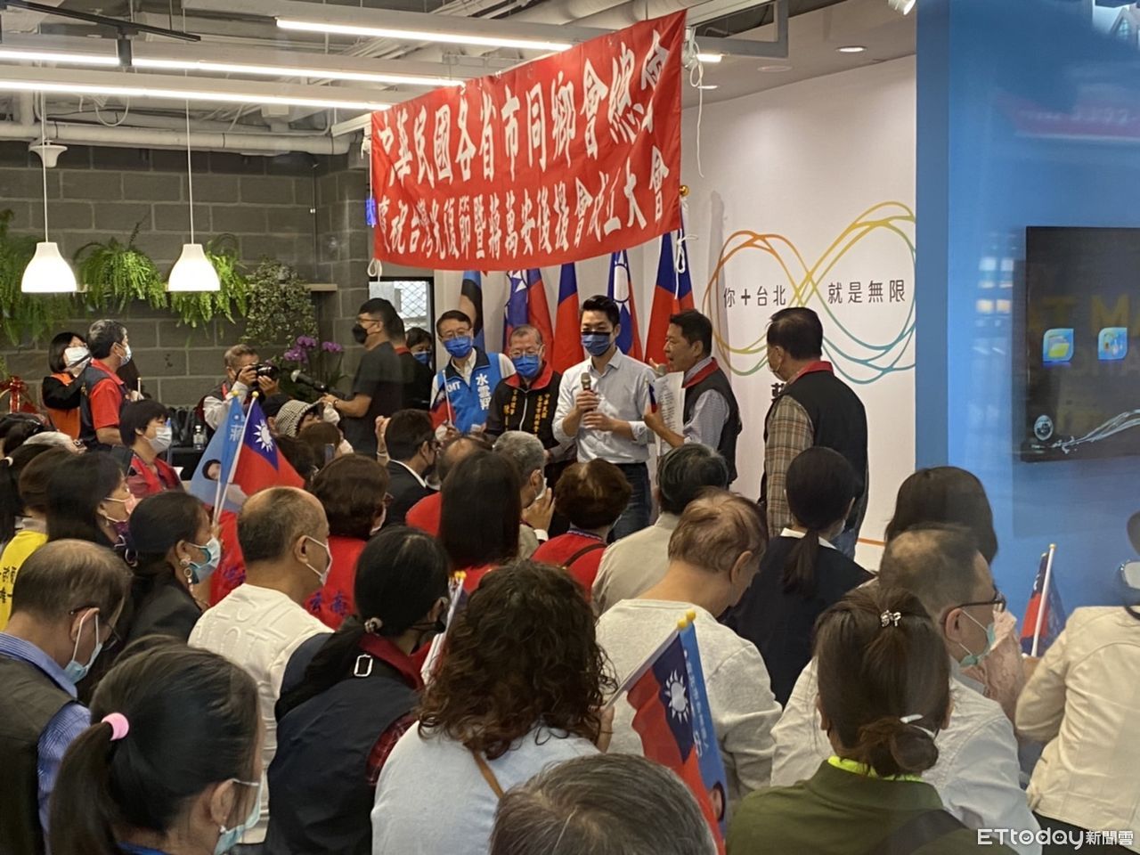 ▲蔣萬安出席慶祝中華民國各省市同鄉總會台灣光復節目暨蔣萬安後援會成立大會 。(圖/記者崔至雲攝,下同)