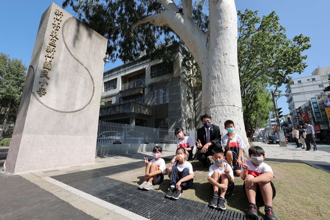教育處補充,校方也藉由本次通學步道改善契機,將年久失修的興學街校門及警衛室重新設計規劃,外觀參考日治時期的原始校門,採用左右對稱的設計,與後方百齡樓相互呼應,躍升為新竹國小的新亮點。