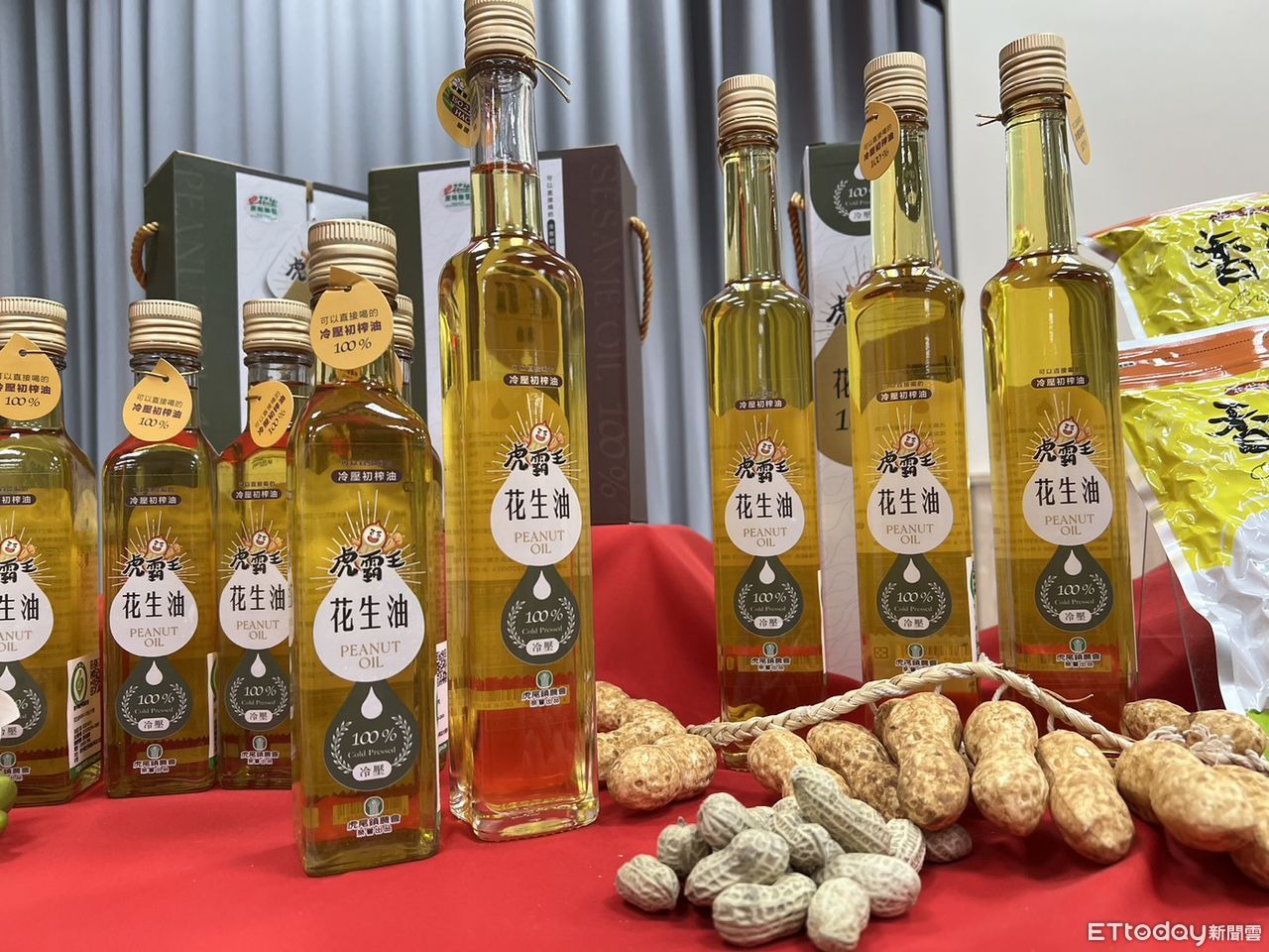 ▲虎尾鎮農會今日發表冷壓初榨花生清油,並邀請元長鄉農會及北港鎮農會共同展示今年度花生加工新產品。(圖/記者蔡佩旻攝)