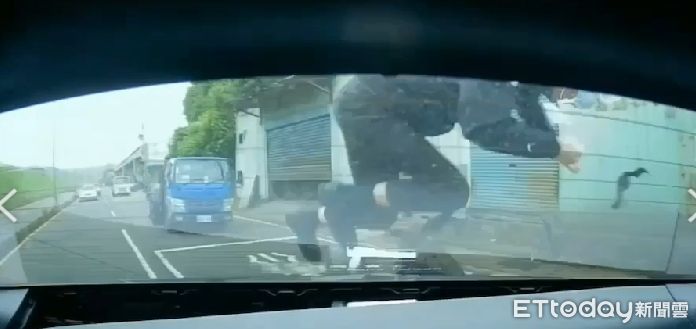 警方調查,林男25日中午12時許騎乘機車,行駛環堤大道往三重方向直行,畫面中可以看到,他隨著前面一台機車,先是閃過一台車子,後來卻「超車失敗」,狠狠撞上40歲朱男駕駛的賓士休旅車,騎士林男撞上擋風玻璃後彈飛倒地!幸好後方車輛沒有輾過,否則後果不堪設想。