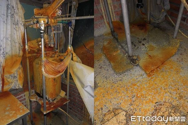 ▲基隆廢棄農場破獲製毒工廠,內部因有毒氣體外露,室內佈滿毒品結晶。(圖/記者郭世賢翻攝,下同)
