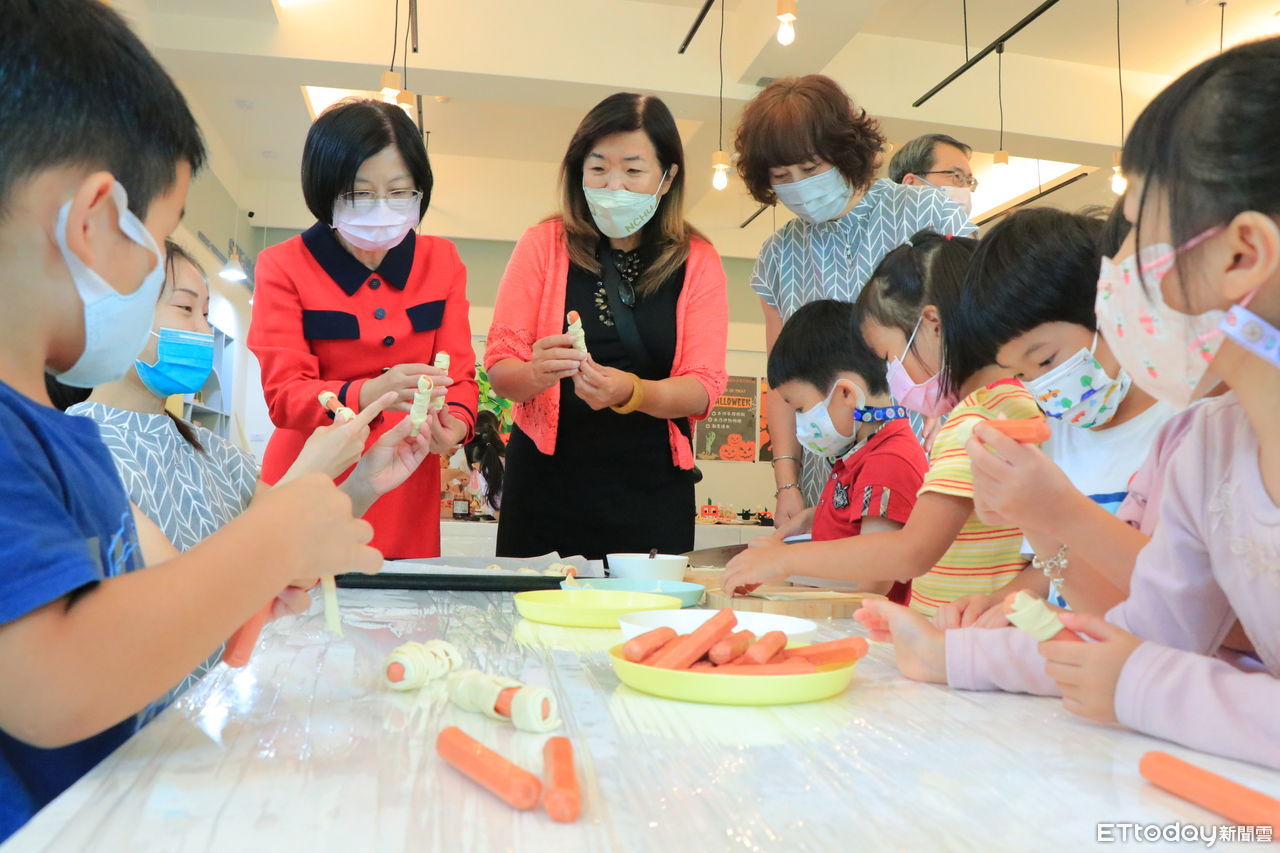 環球幼兒園的萬聖節活動中小朋友創作出手指餅乾,還以熱狗、起酥皮做出木乃伊熱狗捲,笑聲與尖叫聲在STEAM教室中洋溢,小朋友因節慶活動而在歡樂中學習成長。