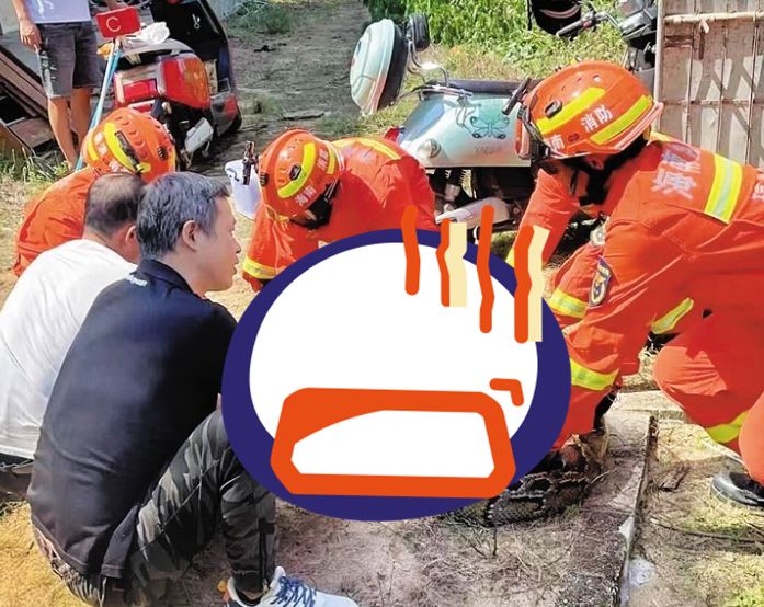▲60公斤蟒蛇潛入村民家。(圖/翻攝自瓊海消防)