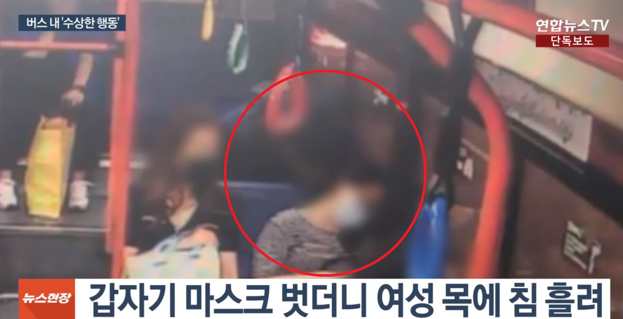 根據《韓聯社》獨家報導,首爾市九老區日前發生一起離奇的公車性騷擾案,一名年輕女子搭乘市區公車時倚靠在窗邊打瞌睡,沒想到後座身穿黑色T-Shirt的男性卻突然拉下口罩、將身軀往前彎,緩緩靠近對方,接著他竟然將自己的臉部靠近該名女子的後頸,將自己流出來的口水滴到女子頸部上。