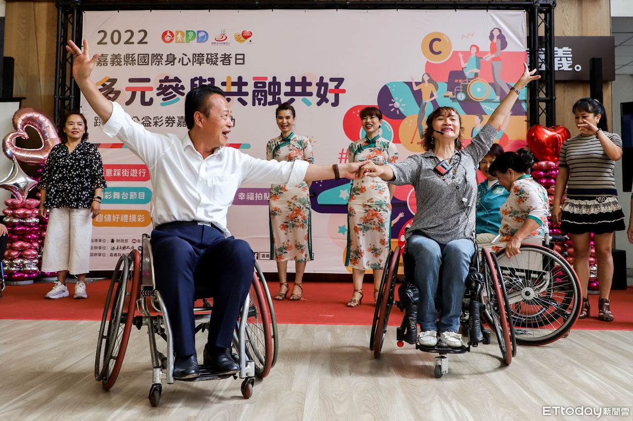 嘉義縣政府29日在嘉義縣布袋鎮公所及嘉應廟周邊道路舉辦「2022嘉義縣國際身心障礙者日『多元參與 共融共好』踩街暨公益彩券嘉年華活動」,邀請嘉義縣在地各社福團體、社福中心及輔具資源中心等單位,一同創意打扮、超越障礙,自信、勇敢的走上街頭,藉由活動讓民眾更重視身心障礙者的相關權益。