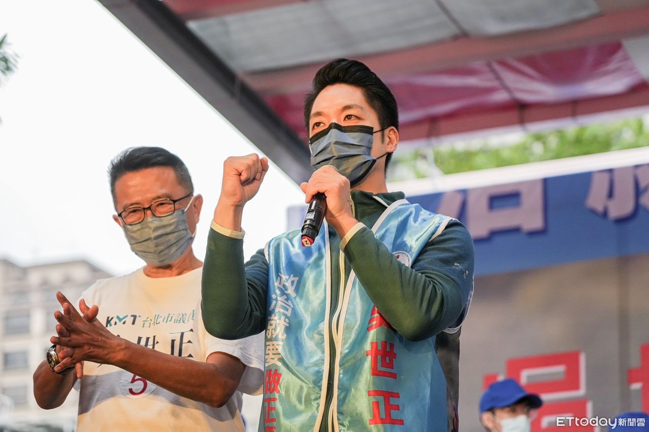 ▲蔣萬安出席吳世正市議員競選總部成立大會。(圖/蔣萬安競辦提供)