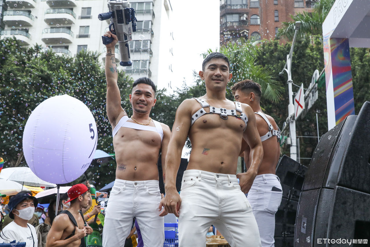 2022台灣同志大遊行今(29日)在台北市政府前市民廣場登場,下午兵分兩路繞行台北東區街頭,儘管台北持續飄著細雨,但澆不熄民眾熱情,不少民眾盛裝打扮,有人裸著上半身展現肌肉,或者手牽著手,還有父母帶著小一的兒子,第三度參加同志遊行,希望從小就教導兒子性別平權,為了呼應主題,主辦單位邀請指揮中心醫療應變組副組長羅一鈞進行議題短講,預估今天活動上看12萬人參與。