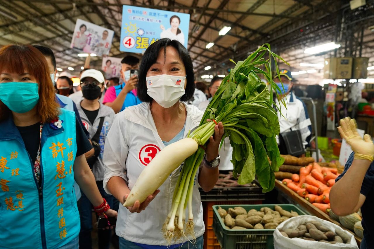 ▲高雄市長候選人柯志恩至大社果菜市場向各位市民朋友請安問好,不少民眾疾呼「凍蒜」。(圖/柯志恩競選辦公室提供,下同)