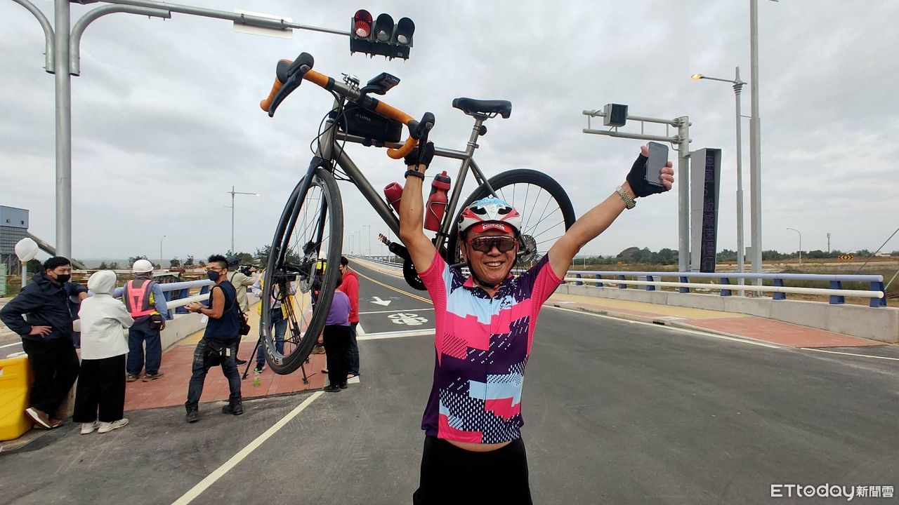 ▲何姓民眾騎自行車搶第一過橋。(圖/記者林名揚翻攝,下同)