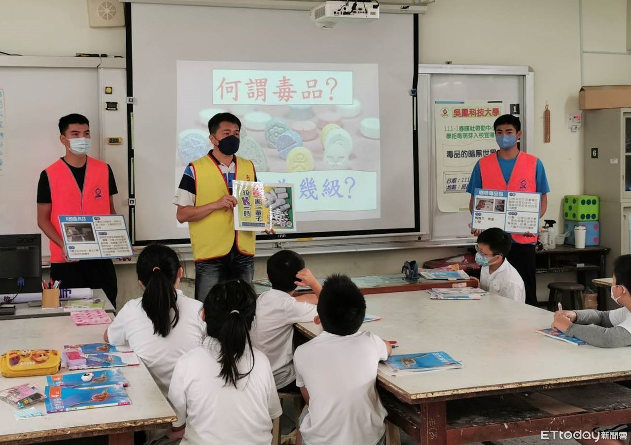 吳鳳科大軍訓室由學生組成反毒宣導團,以大手牽小手,共同設計親和、有趣的活動,引領學童瞭解毒品危害與拒毒的技巧,把反毒的種子向下扎根、向下散播;宣導過程中結合短劇,以活潑有趣的方式,將反毒意識傳達給小朋友,讓反毒觀念從小扎根,期間也穿插有獎徵答引領小朋友體認反毒的重要性,每位都競相舉手搶答,增添歡樂氣氛,期望藉此培育拒毒萌芽的小尖兵。
