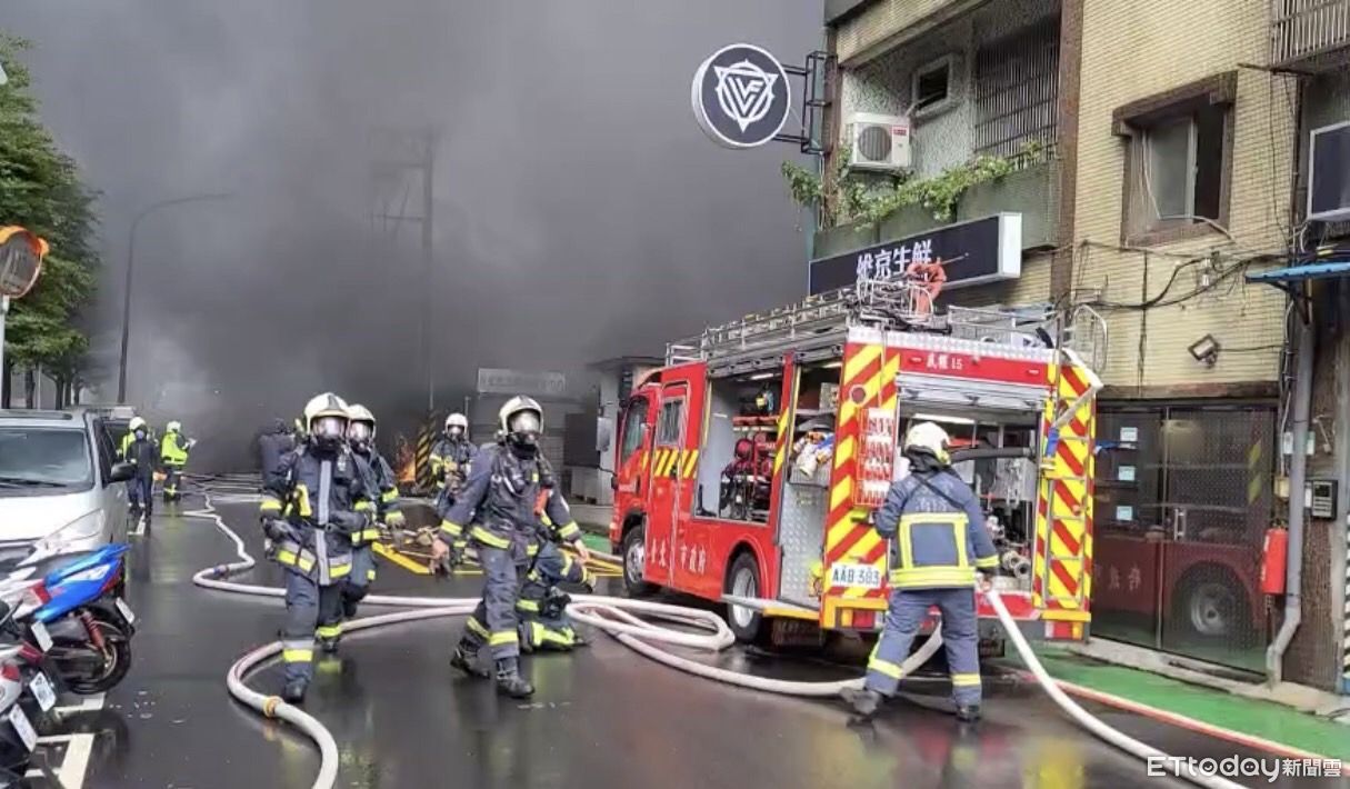 初步了解,現場為一棟鐵皮建築,裡面堆放易燃物品燃燒,火勢從一樓燃燒到二樓,目前未發現人員受困。