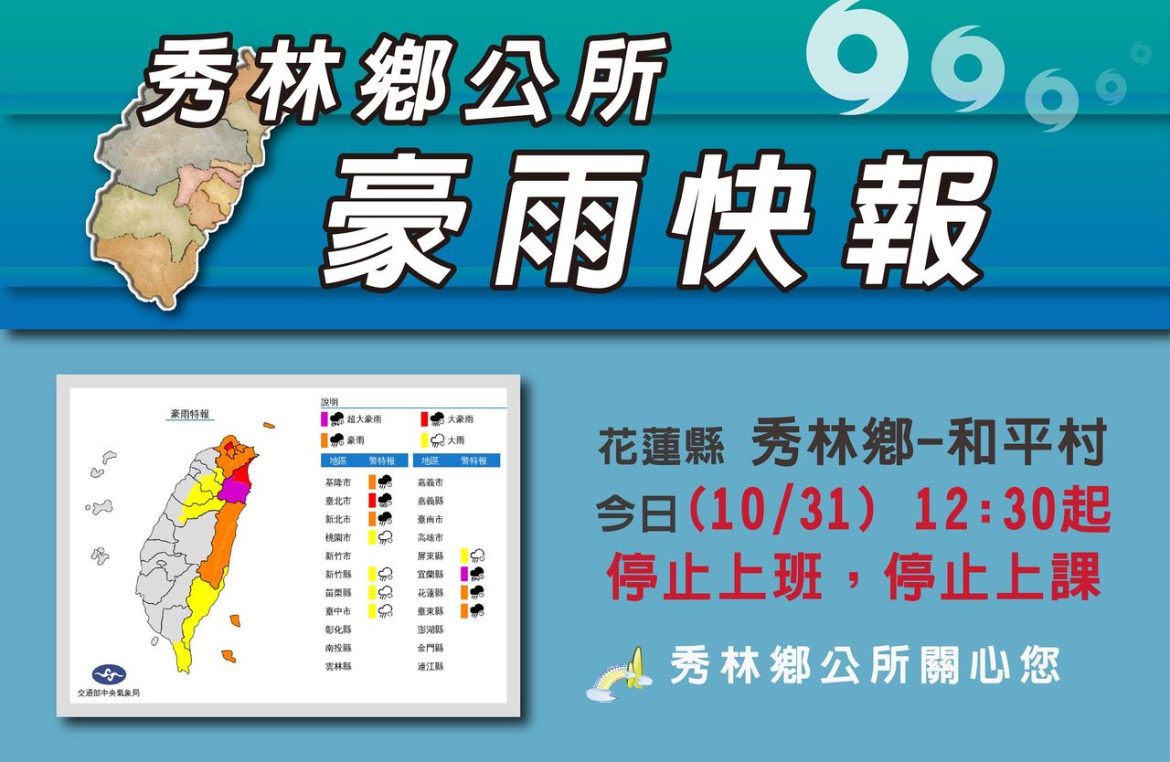 ▲花蓮縣秀林鄉停班課。(圖/翻攝「花蓮縣秀林鄉公所」臉書)