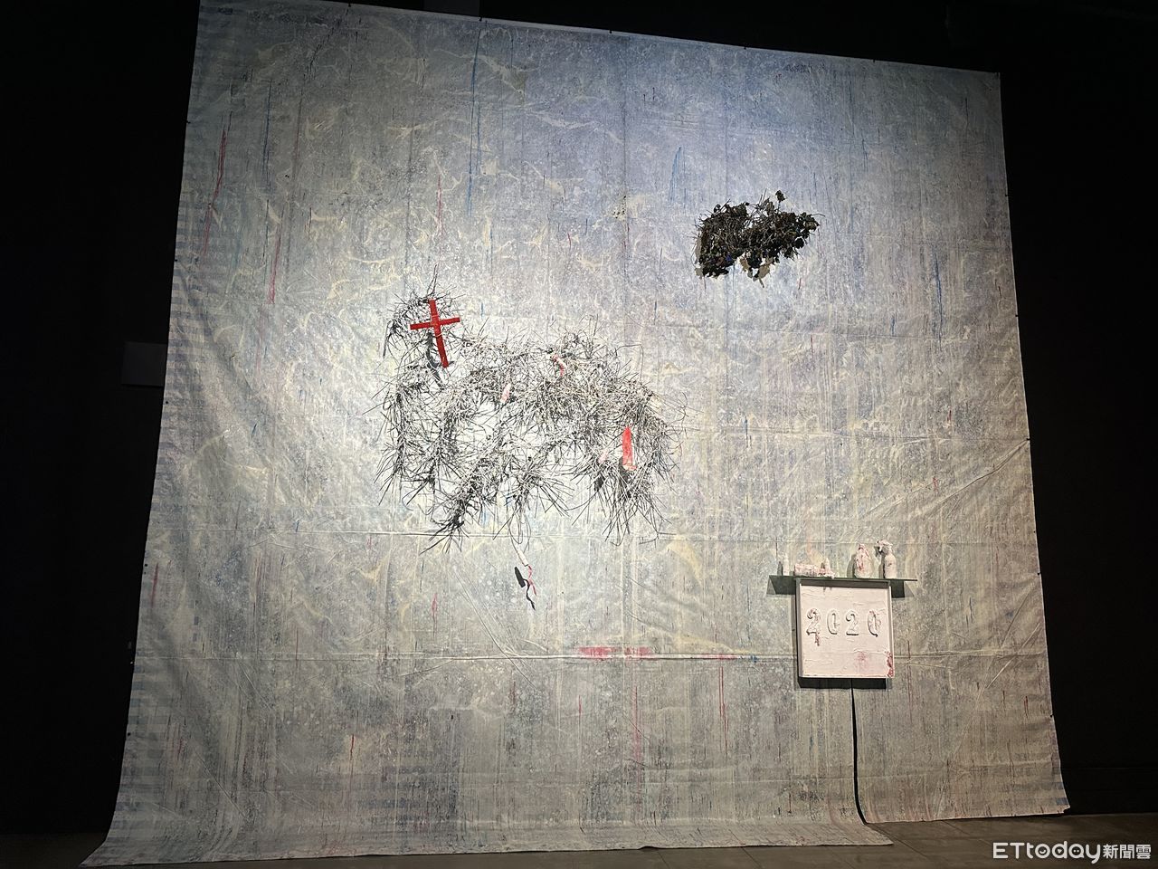 ▲2022江賢二個展,其中一件作品以COVID-19為靈感創作。(圖/記者林育綾攝)