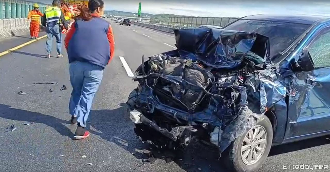 國道警方初步調查,事故路段當時正進行移動式內線車道垃圾撿拾施工,轎車駕駛疑似未注意車前狀況,直接撞上施工車輛後方的防撞工程車,導致防撞車防撞桿潰縮、變形,施工人員沒有受傷。商用車駕駛座及副駕安全氣囊都爆開,2人都有綁安全帶,頭部、胸部輕微挫傷無大礙,事故已於10時40分排除。