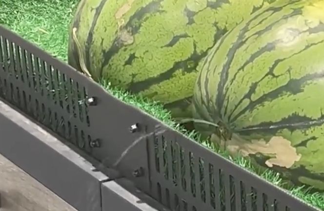 廣東一名男子10月31日在逛超商時,發現水果區的某顆西瓜底部不停的在向外「噴水」,小水柱如同男生小便時的拋物線一般,起初原本覺得挺有趣,便用手機記錄下來,不過,這名男子也聞到西瓜流出的水,味道相當難聞,再加上地面上已經有一灘積水,擔心其餘消費者會滑倒受傷,連忙通知相關人員處理。