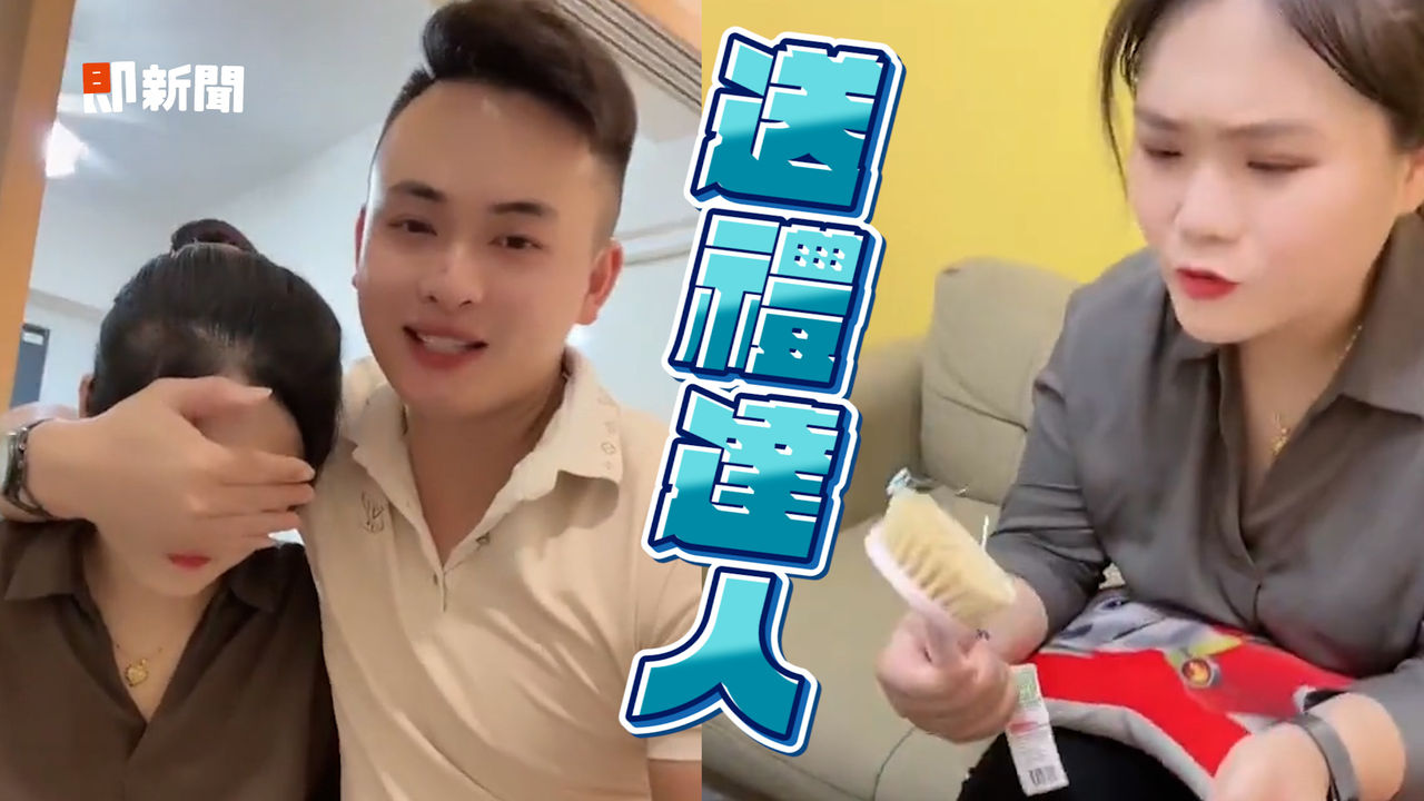 ▲調皮的老公跟看到「禮物」傻眼的老婆。(圖/TikTok/phuong03061994 授權)