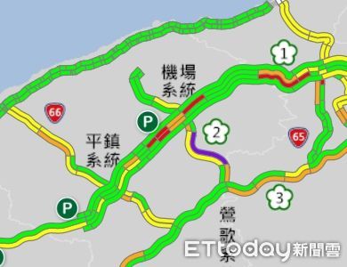 ▲國道2號2輛大貨車追撞!車輛回堵5公里「紫爆」。(圖/翻攝高公局)