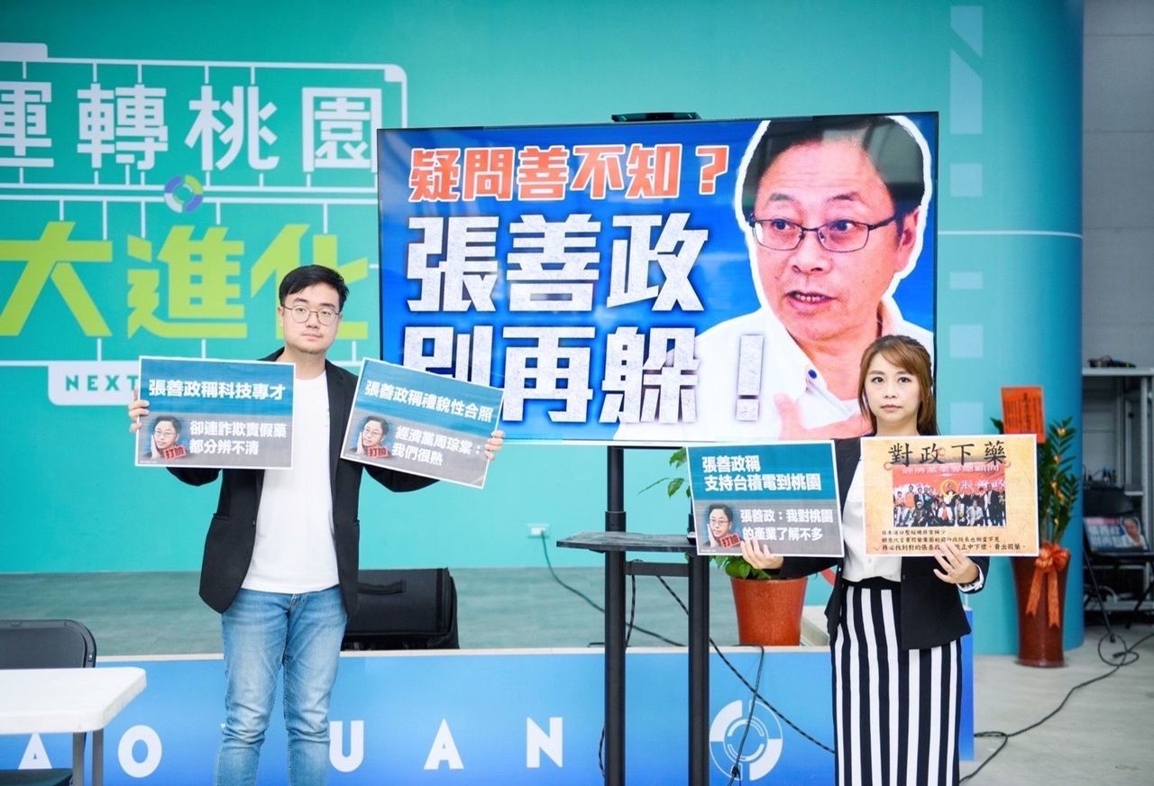 桃園市長候選人鄭運鵬競辦發言人黃韋鈞、林芸帆今(4)日召開「疑問善不知?張善政別再躲!」記者會,就張善政先生和詐欺賣假藥的政黨過從甚密、自我吹噓及對桃園現況懵懂無知一一說明及破解。林芸帆特別播出一段張善政2016年備詢影片,稱「對桃園產業了解不多」,打臉張善政參選以來的自吹自擂。