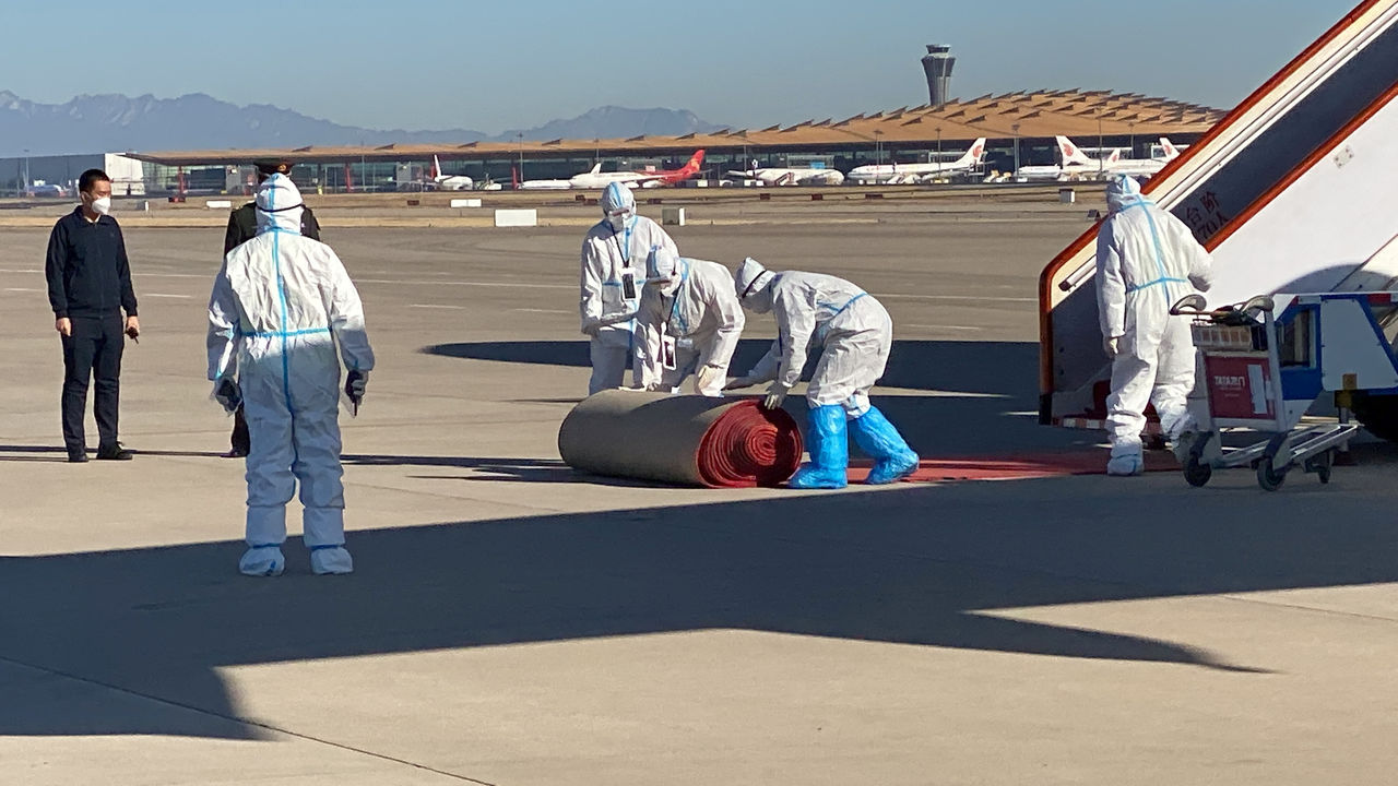 據《德國之聲》報導,德國政府的專機4日降落北京後,進入機艙的第一個人是穿著全身防護服的領航員,即外界口中的「大白」。