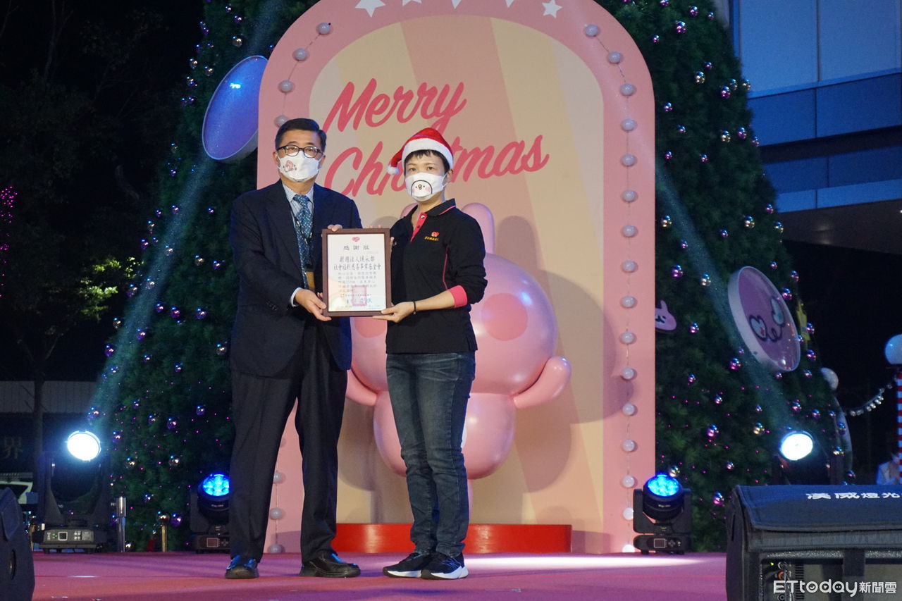 聖誕佳節將至,南紡購物中心7日晚舉辦聖誕點燈公益活動,南紡購物中心董事長暨財團法人侯永都社會福利慈善事業基金會創辦人侯博明,溫馨送暖當場捐出112萬元的輔具設備給台南市私立菩提林教養院,隨後率領一級主管點亮以「卡娜赫拉的小動物」為主題打造的13米高聖誕樹,粉色的幸福光芒瞬間照亮夜空。