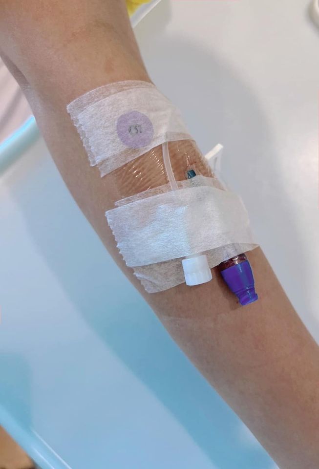 ▲高虹安身心俱疲住院吊點滴。(圖/翻攝高虹安臉書)