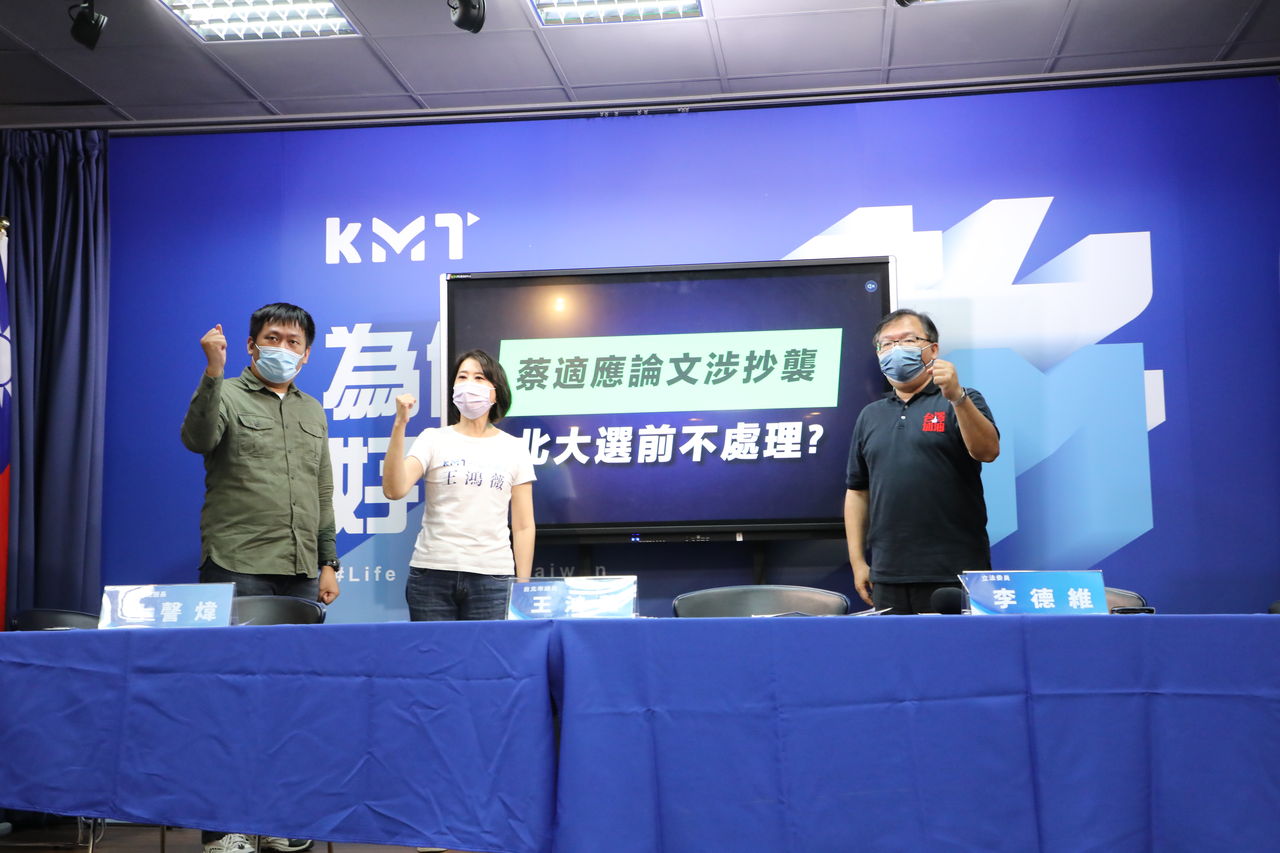 民進黨基隆市長候選人蔡適應9月初遭踢爆博士論文涉嫌抄襲一事,經檢舉至今已超過兩個月,國民黨今(10)日再次召開「蔡適應論文涉抄襲,台北大學選前不處理?」記者會,質疑台北大學遲遲未宣布審查結果,是否有意拖延至選後才處理?呼籲國立台北大學不要藉故拖延,應比照其他學校盡速公布審查結果,讓基隆市的民眾能夠在公正客觀的前提下進行投票。