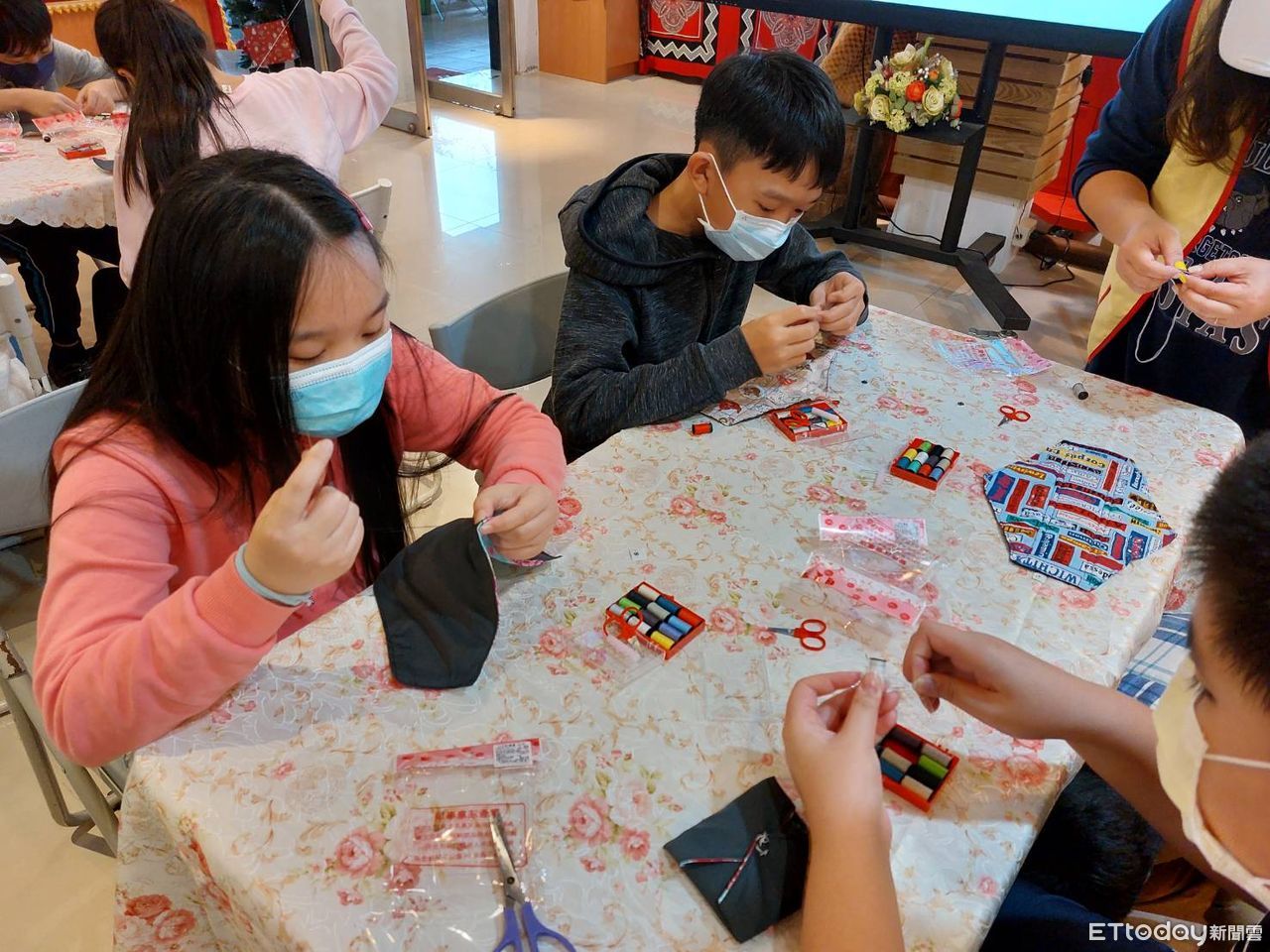 ▲新北市新店區大豐國小學生縫製布衛生棉,跨海送到烏干達。(圖/新北市教育局提供)
