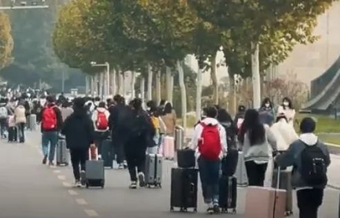 此前,大陸最大的民辦學校-河南的黃河科技學院,三大校區之一的南校區,因為傳聞「學校有人感染,造成了病情傳播,據稱有一兩百管核酸異常」,爆發全區3萬餘名學生集體離校。網傳圖片顯示,一時間學校周邊路上人頭攢動,出租車和接學生的私家車幾乎把街道占滿。