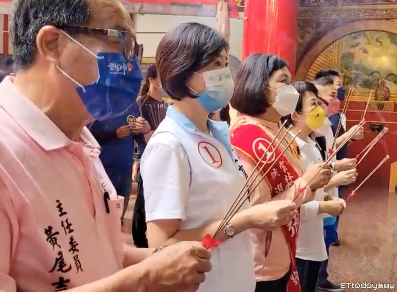▲台中市長候選人盧秀燕、嘉義縣長候選人王育敏,今日一同前往雲林虎尾鎮天后宮參拜,與雲林縣長張麗善三人合體為選戰造勢。(圖/記者蔡佩旻翻攝)