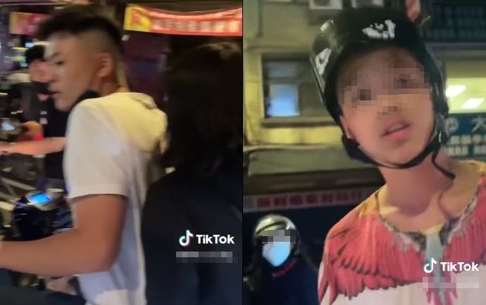 等到綠燈時,白衣男一樣沒戴安全帽就騎車走人,坐在他後座的女子也沒戴安全帽,一行人離開前不忘喊「怎樣不開心喔可以叫人啦,X你X」。