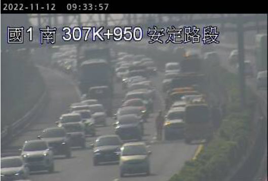 ▲國1北上安定路段連兩起追撞事故,造成車流回堵。(圖/翻攝高速公路1968)
