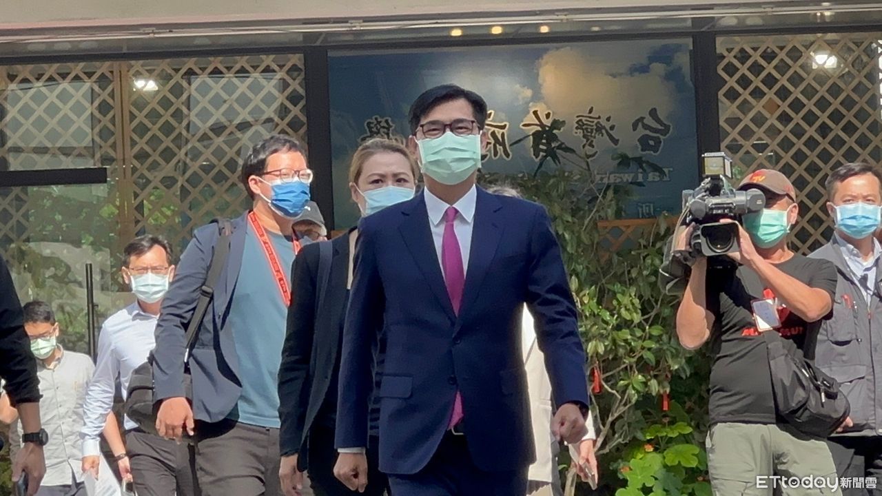 陳其邁則在下午1點10分抵達,他穿著深藍色西裝、打著桃紅色領帶,一派輕鬆進入會場。他說今天沒有特別打扮,舊西裝、舊領帶、舊皮鞋、舊襪子,一切如常。
