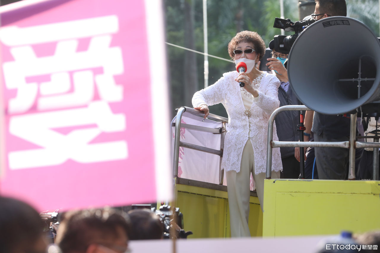 ▲前副總統呂秀蓮出席「愛和平.保台灣大遊行」。(圖/記者林敬旻攝)