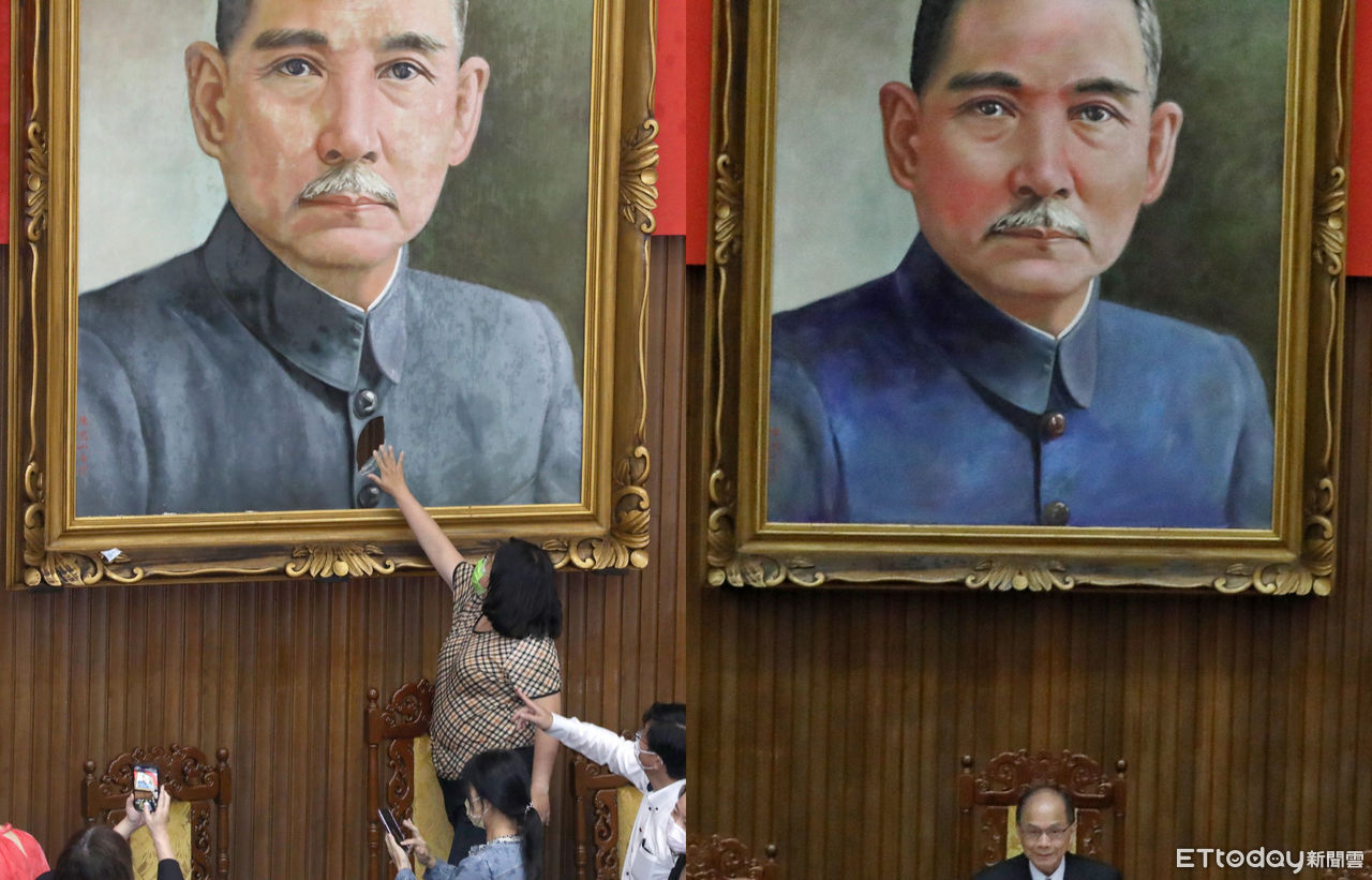 ▼已修復的國父遺像。(圖/記者屠惠剛攝)