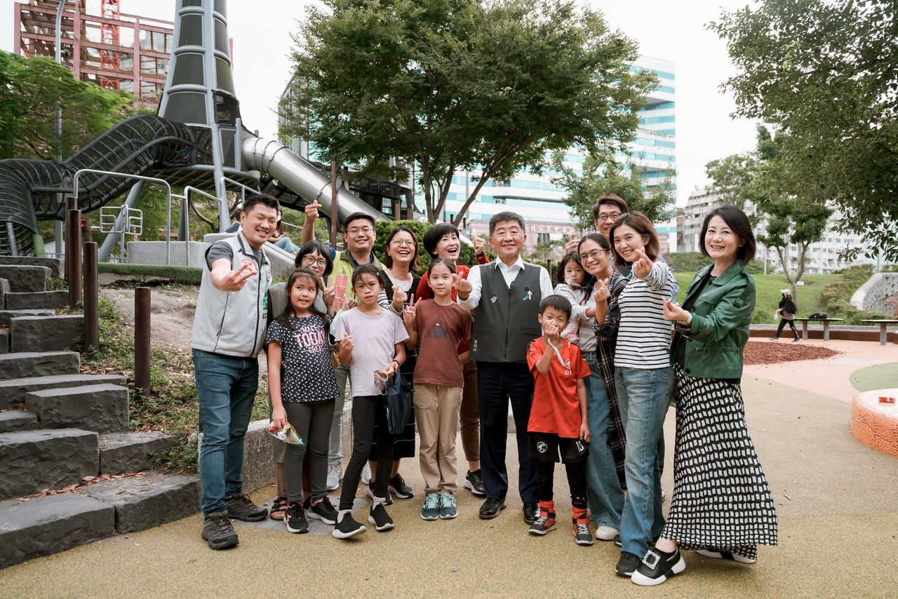 陳時中表示,過去,在衛福部長任內,社家署與各部會努力推動遊戲場的定期檢驗,提升兒童的遊戲安全,未來,他當市長,也將城市的遮蔭、降溫,視為淨零碳排調適政策的重中之重,給孩子充分的遊戲空間、遊戲權利,是促進孩子健康成長、學習的重要關鍵,對於一些比較具有挑戰性的探索遊具,應該有更多的社會溝通,讓大家懂得讓孩子嘗試,try and error,這才能促進孩子的成長,激發孩子的創意。