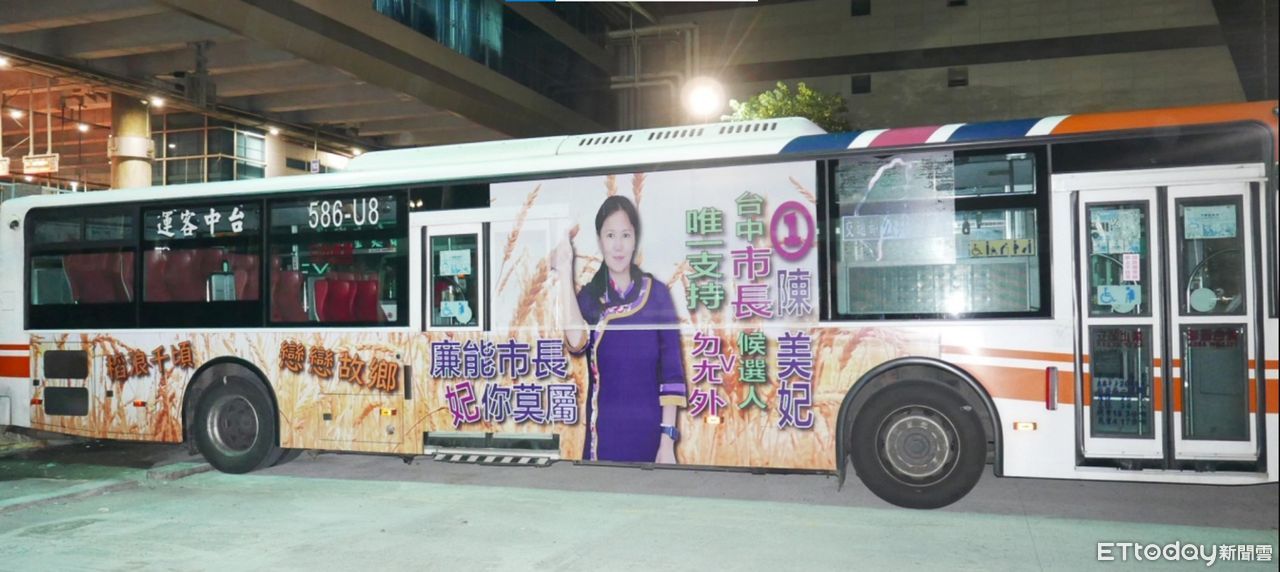▲陳美妃的競選廣告也刊登在公車上,增加曝光度。(圖/陳美妃提供)