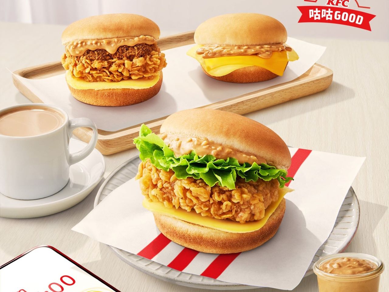 全新花生嫩雞系列早餐新品「花生吮指嫩雞蛋堡」、「花生肉鬆嫩雞蛋堡 」、「花生起司蛋堡」即日起正式上市,還有多款手作早餐,於肯德基全台早餐限定門市銷售。