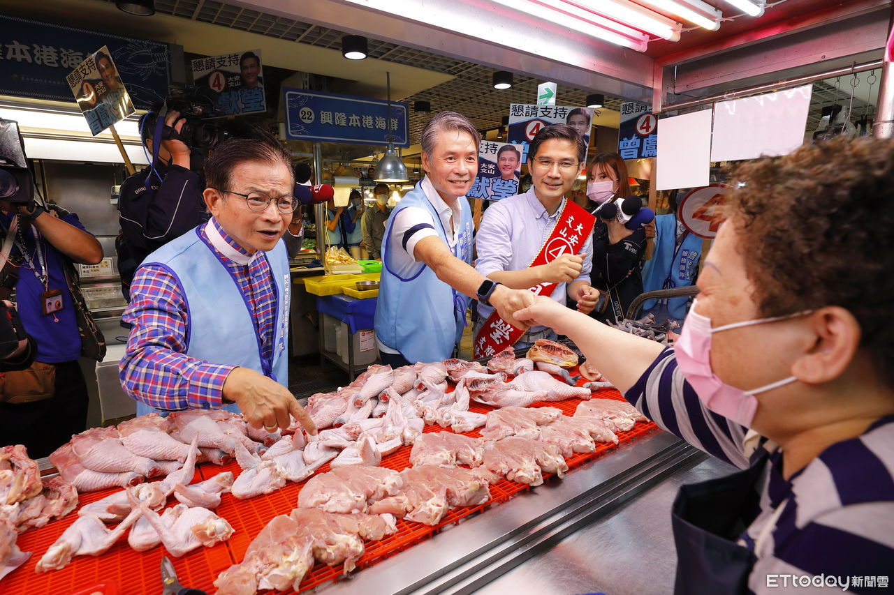 ▲許久沒露面的前國安會秘書長金溥聰,今天特地出來與立法委員賴士葆為國民黨大安文山市議員參選人曾獻瑩輔選,三人連袂到興隆市場掃街拜票。(圖/記者湯興漢攝)