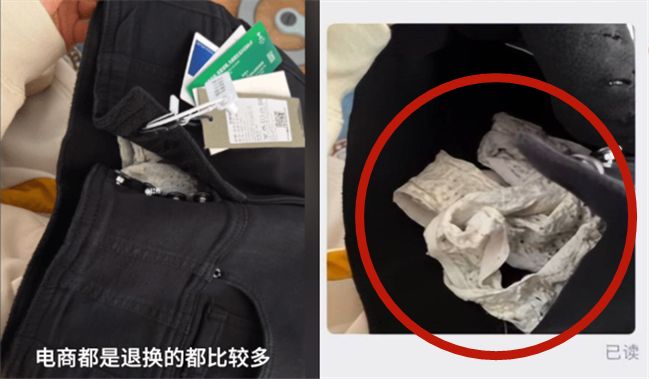 孟女無奈表示,「收到褲子之後,也是隨便地打開了包裝,誰買件衣服還要錄一個開箱的影片是不是。而且內褲所在的位置也是十分的隱藏,只有將牛仔褲的扣子解開之後才能發現,這明顯就是有人退貨之後,商家並沒有做檢查,最終又重新發出,導致收到了別人的退貨。」