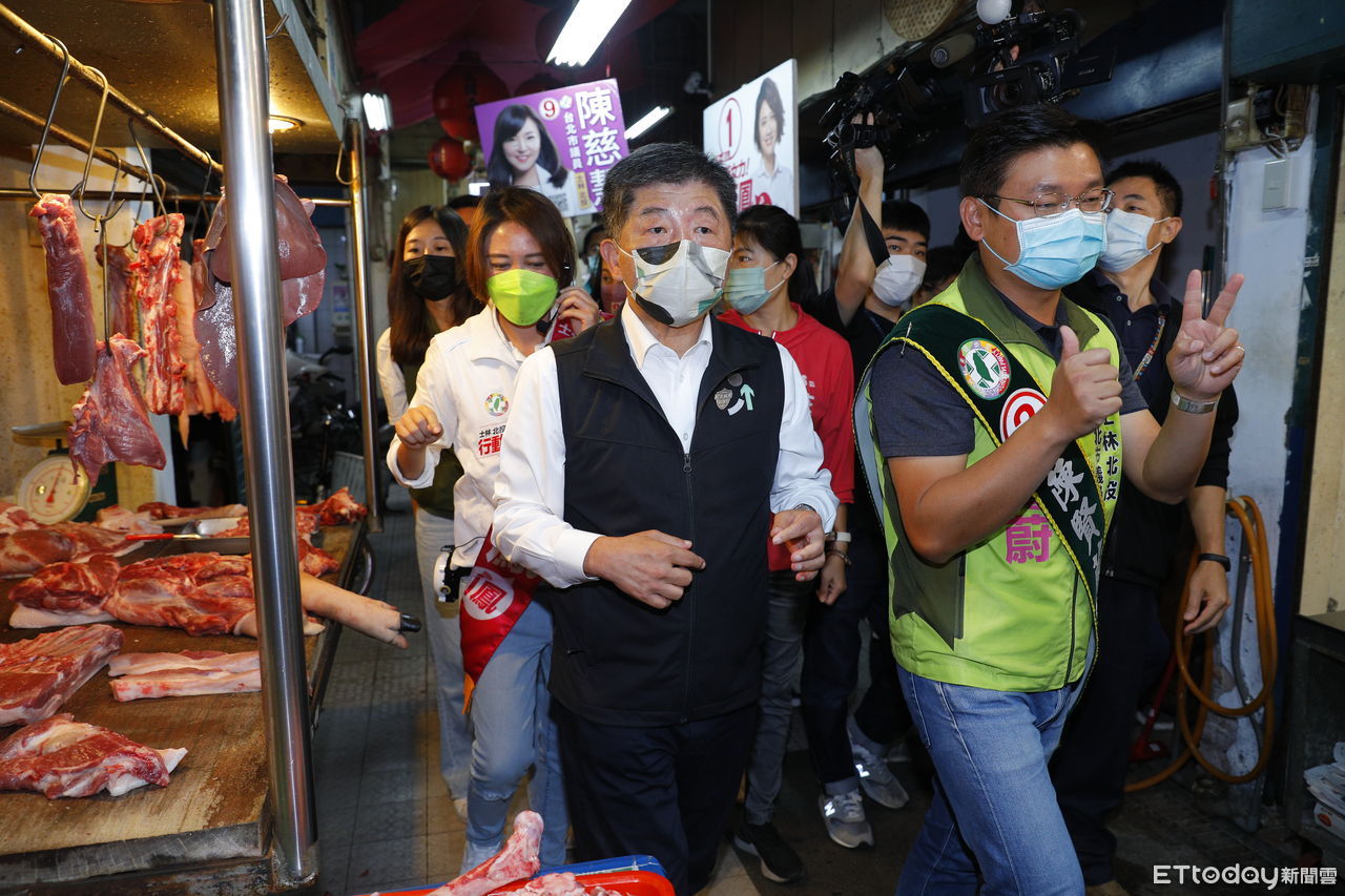 ▲民進黨台北市長參選人陳時中,18日一早在黨籍市議員及里長陪同下,前往葫蘆堵市場掃街拜票。(圖/記者湯興漢攝)