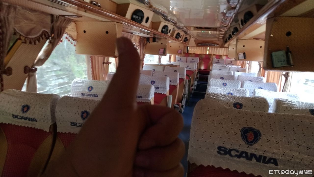▲翁姓民眾務,在獨自乘車的VIP接駁車上比出大拇指拍照留念。(圖/記者楊漢聲翻攝)