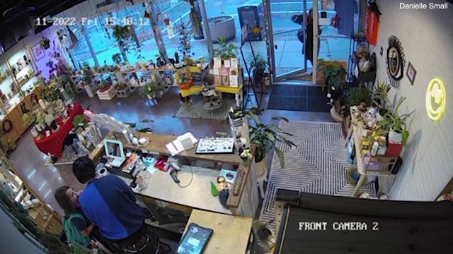 沒多久後,格林便發現一間正在營業的花藝店,於是就趕緊衝進店內,並低聲向收銀員、17歲的丹妮絲(Hannah Daniels)求救,「請妳假裝是我媽媽,我被跟蹤了」。而此時怪異女還在門口拉著門觀望,丹妮絲見狀後也馬上上前將門關閉上鎖,這才讓對方無奈離去。