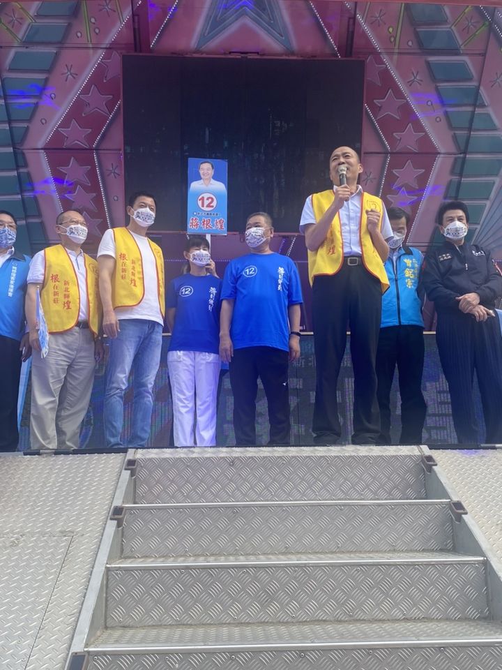新北市議長蔣根煌今(19)日新莊競選總部舉辦成立大會,現任新北市長侯友宜、前高雄市長韓國瑜均到場助陣。韓國瑜強調,新莊區是北北基桃竹的中心點,而北台灣人口加在一起超過1千萬人,呼籲蔣根煌要與侯友宜繼續合作,可以讓新莊帶動整個北台灣。蔣根煌也說,要讓新莊更加繁榮,讓市民可以開心唱歌、跳舞、打麻將。