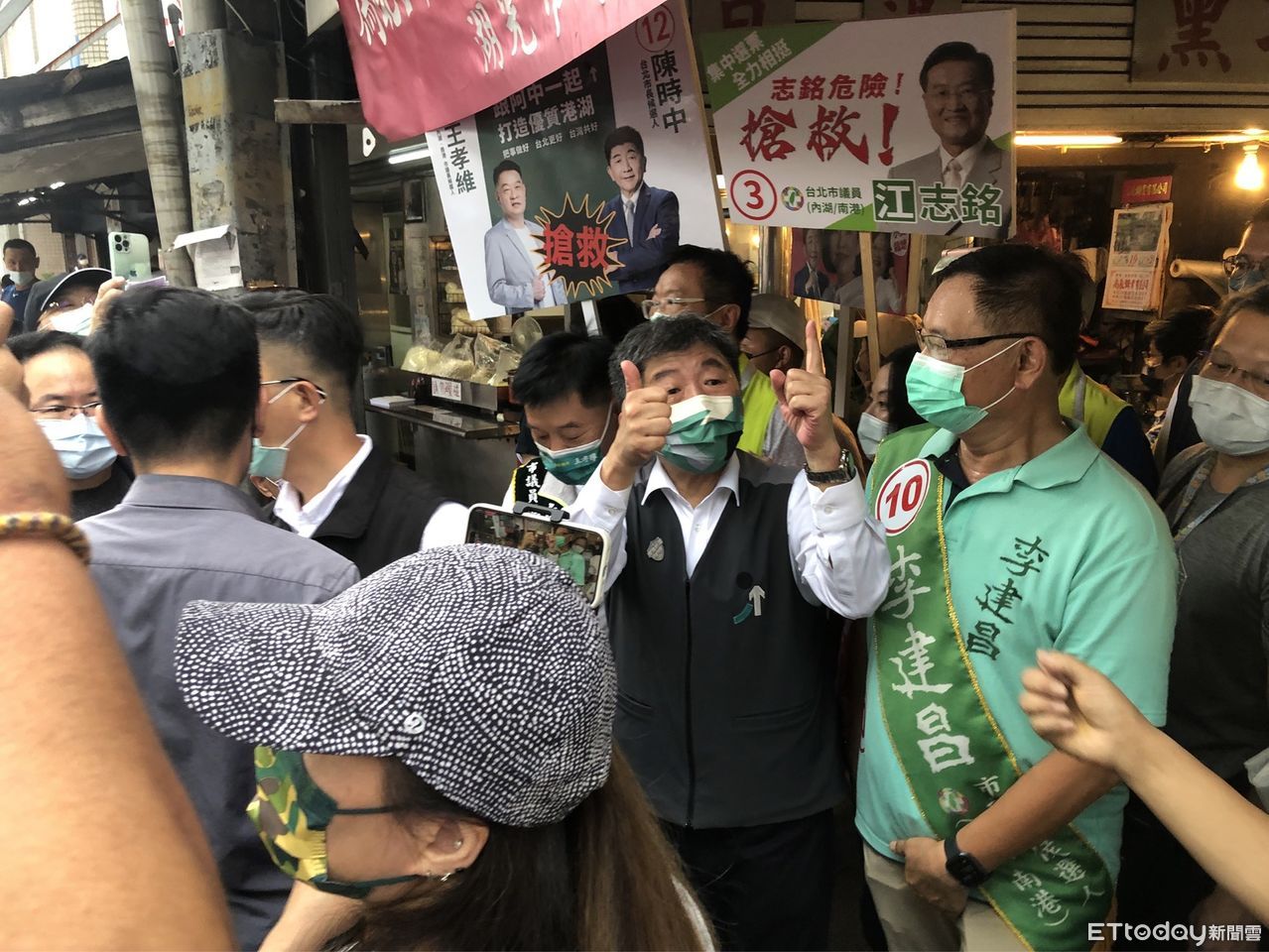 ▲陳時中今天上午前往湖光市場掃街拜票。(圖/記者黃國霖攝,下圖同)