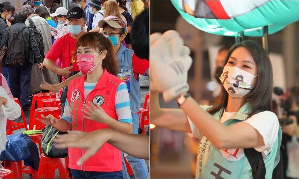 ▲張嘉玲(左)陪民眾做早操。王如意(右)和李正皓選前槓上。(圖/翻攝自Facebook/張嘉玲、王如意)