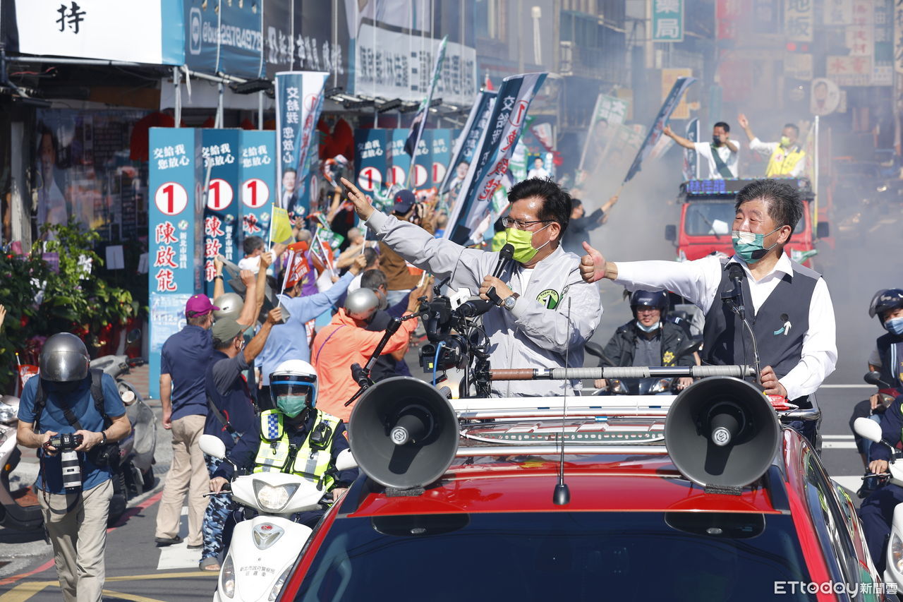 九合一選舉倒數5天,民進黨雙北市長候選人陳時中、林佳龍21日上午啟動聯合車掃,一路從新北三重車隊掃街到台北萬華。陳時中說,要化解仇恨對立,用愛與包容繼續努力;林佳龍則表示,三重、萬華是最需要翻新的行政區,盼雙北雙贏,創造首都圈聯合治理的遠岸。《ETtoday東森新聞雲》搭乘媒體車直擊,陳、林兩人除了對夾道支持者揮手,在車上也不忘自拍留念。