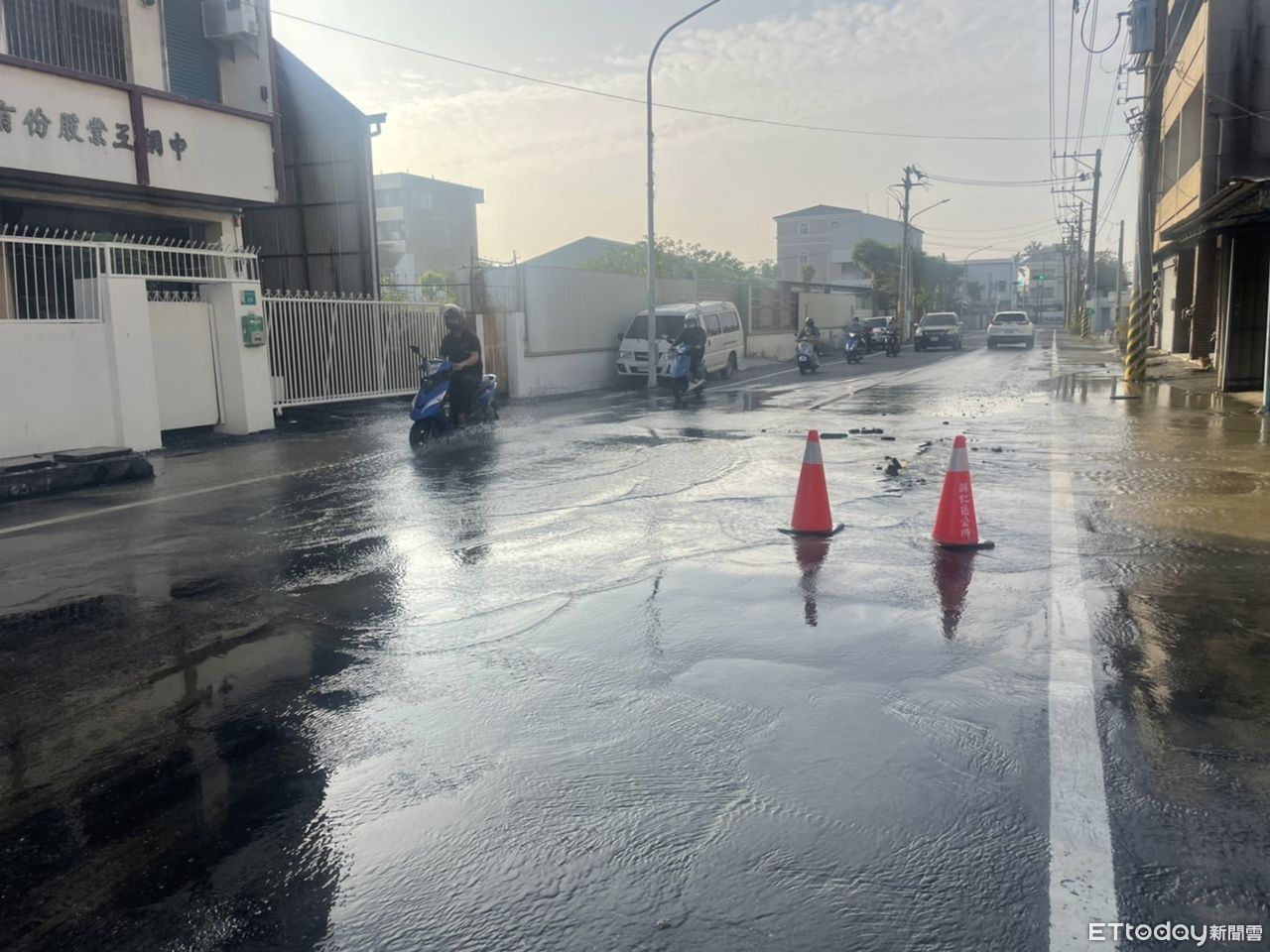 據了解,台南市歸仁區民生南街就有民眾發現路面破裂有水噴出的情況,區公所據報馬上通報自來水公司搶修,並派員到場勘查,現場冒出水流,整個路面都是水流,人車經過都放慢速度。水公司六區處目前派員停水搶修中。