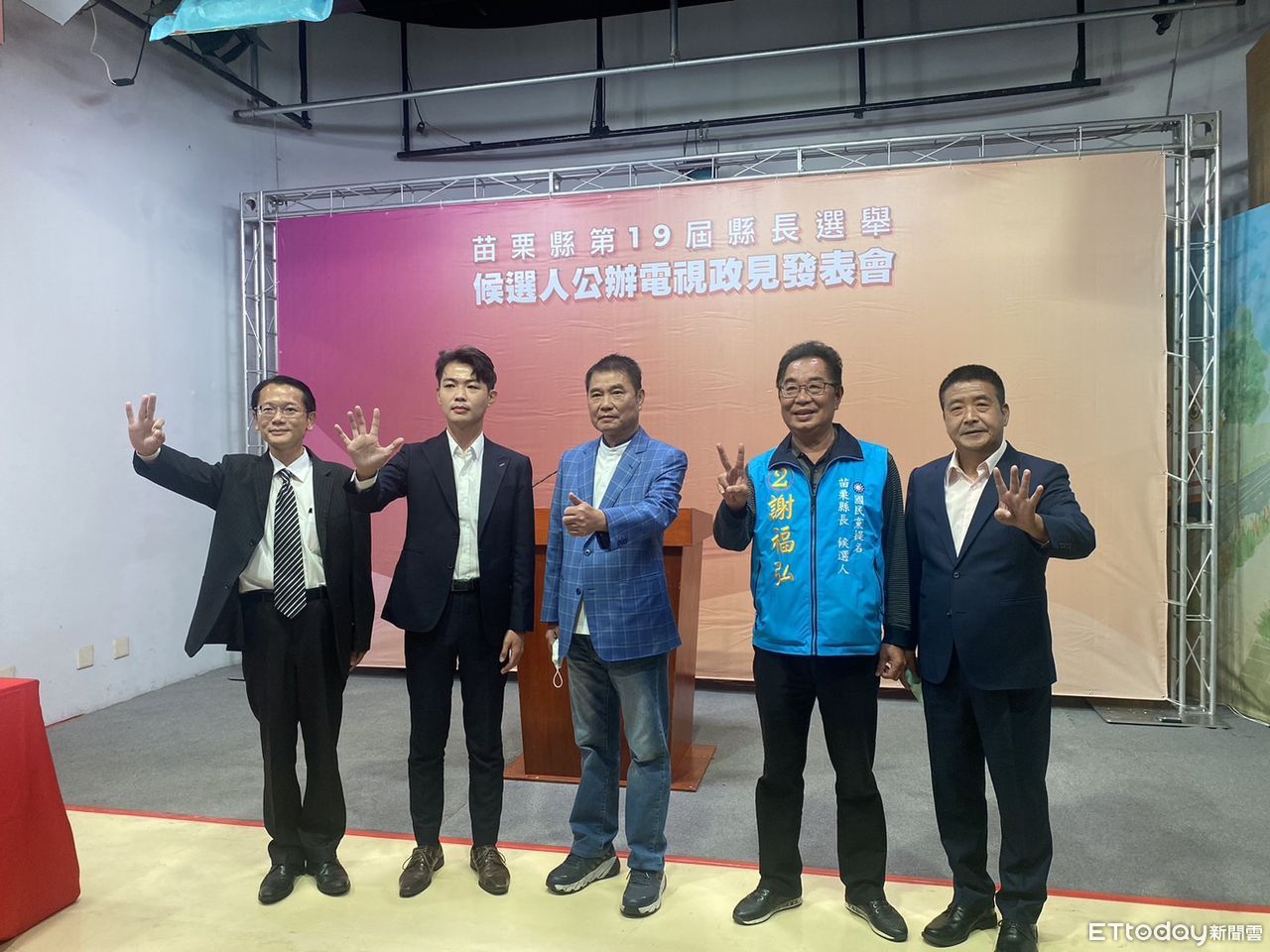 苗栗縣長選舉今(21)日舉辦第二場公辦電視政見發表會,依抽籤順序徐定禎、謝福弘、宋國鼎、鍾東錦、吳盛聖依序上場,每輪12分鐘,2輪5位候選人的發表內容,與上一場大致相同,主要都是政見藍圖論述,把握爭取最後催票的機會。